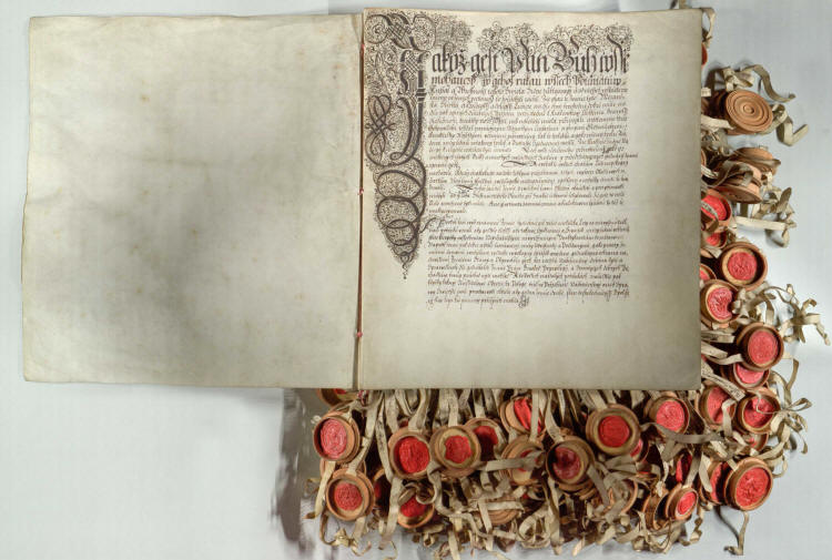 Nejjasnější, nejnepřemoženější a velikomocný římský císaři, uherský a český králi a pane, pane náš nejmilostivější! Nepochybujeme, že jak pánu Bohu všemohoucímu a všecko vědoucímu tak i V. C. M., jakožto pánu všeho křesťanstva, králi, pánu našemu nejmilostivějšímu, o tom dobrá, vědomost, ano také i mnohým jiným známá jest, kterak my náboženství toho a té pravé křesťanské starodávní pod obojí svaté víry jsme, kterážto od syna božího, pána a spasitele našeho Ježíše Krista, svůj začátek má a skrze svaté apoštoly po světě hlásána byla až i do tohoto království Českého jistým božským řízením před několika sty léty prvotně přišla, potom skrze Mistra Jana z Husince, svaté paměti, a jiné svaté muže zase kázáním a učením slova božího obnovena až i také odsud do okolních zemí se jest dostala. Pro kteréžto náboženství a pravou víru předkové naši veliká sou protivenství snášeti musili, chtíce při poznalé pravdě a čistém slovu božím zůstati a nám svým potomkům pokladu tak drahého a od pána Boha zjeveného pozůstaviti. My také z slova božího to poznajíce, že proto sme od pána Boha našeho stvořeni, abychom jeho jakožto stvořitele našeho na tomto světě ctili, slavili a velebili tou poctou, jakouž on v slově svém ctěn býti chce, jeho božské vůle ve všem šetříce a podle nejvyšší naší možnosti vykonávati a vyplňovati ji hledíce, vždyckny jsme přední o to péči měli, aby pokoj, lásku, i svornost při náboženství v straně naší byla zachována. A když pak teď v těchto letech od mnohých a zvláště od některých bezbožných kněží od takového pravého náboženství a víry křesťanské starobylé i dobrého řádu s velikým lidu obecního pohoršením škodlivě, jest vykročeno a lidem prostým k hřešení jako dvéře otevřeny byly: i jsouce my žádostivy toho, aby křesťanský, starobylý a dobrý řád zase v církev a stranu naši uveden byl, toho sme nejednou při V. C. M. poníženými žádostmi našimi hledali, ano i teď při tomto nynějším sněmě opět touž žádost ku paměti přivésti chtíce prvé sme našim milým pánům a přátelům ze všech tří stavův pod jednou způsobou přijímajícím pro zachování svornosti a lásky úmysl náš s přátelským zakázáním v známost uvedli s tou žádostí, aby podle nás k V. C. M. šli a nám v tom dobrém předsevzetí našem nápomocni byli, o čemž oni mezi sebou promluvivše a s přátelským se zase k nám zakázáním odpověď dávajíce v své řeči toho sou doložili, že proti nim to nic není a o tom nic nepochybují, cožkoliv v věcech našich dobrého obmýšlíme, že V. C. M., vyrozumějíc tomu, v tom se k nám milostivě a náležitě ukázati i zachovati ráčíte, a tak s nimi v lásce a v přátelství srozuměni jsouce k V. C. M. všickni pod obojí přijímající společně sme šli a skrze nejvyššího pana sudího království Českého oustně poníženou a jednomyslnou žádost na V. C. M. sme vznesli, že jsouce my toho pravého křesťanského starobylého (jakž výš dotčeno) náboženství a víry pod obojí, kteráž také předešlých časův odsud do okolních zemí se rozhlásila a potomně v svaté říši při obecním sněmu v městě Augšpurce léta 1530 v jistých artikulích sepsána a slavné i svaté paměti velikomocnému císaři Karlovi toho jména Pátému u přítomnosti tehdáž, slavné paměti, krále Ferdinanda, V. C. M. pana otce nejmilejšího, podána a stavům svaté říše dovolena a od mnohých církví za pravou křesťanskou starodávní svatou víru srovnávající se s písmy svatými prorockými, apoštolskými i s Krista pána učením uznána i přijata jest byla; skrze kteréžto takové jejich snešení, J. M. C. milostivé dovolení, mezi stavy svaté římské říše svornost a láska uvedena a pokoj utvrzen jest, tak že jiná všelijaká škodlivá, scestná a kacířská učení s slovem božím se nesrovnávající takovým vyznáním jako nějakým pravidlem k rozsouzení a k vykořenění přivedena sou. Tím a takovým dobrým stavův svaté říše příkladem my pro vzdělání a zachování v tomto království mezi sebou svornosti, lásky, pokoje a dobrého řádu, ano také dle vykonání naší křesťanské povinnosti, kterouž, jakž o tom napřed dotčeno jest, předně pánu Bohu našemu, potom V. C. M., naposledy i vlasti naší a dítkám našim zavázáni jsouce, abychom předně o ty věci, na kterýchž čest a chvála pána Boha všemohoucího a našich duší spasení záleží, věrně, pilně a snažně vždycky v této naší smrtedlnosti pečovali a se starali, poddaně a poníženě V. C. M., jakožto nejvyšší křesťanské vrchnosti a pána našeho nejmilostivějšího, sme poníženě prosili, abyste V. C. M. nám milostivě k tomu dovoliti ráčili, tak abychom se společně sjíti a vedle naší starobylé víry a náboženství křesťanského o to promluviti a náš křesťanský církevní řád, z kteréhož již v tomto království škodlivě vystoupeno a vykročeno jest, zase v jistý způsob a v spis uvésti mohli, tak aby aspoň již tou měrou učení falešná a všelijaké škodlivé sekty, kteréž sou se stranou naší, nápodobně jako nějakým pláštěm přikrývaly, mohly ovšem k vykořenění přivedeny býti. Kdež k tomu ke všemu, jakž se svrchu píše, majíce milostivé od V. C. M. povolení, všickni z toho velice potěšeni jsme a pánu Bohu všemohoucímu srdečně děkujíce, jeho božské milosti pokorně prosíme, aby V. C. M. za dlouhé časy šťastné, pokojné nad námi panování a všech království a zemí rozšíření, nad nepřátely vítězství a všelijaké štědré časné i věčné požehnání dáti a svým svatým duchem V. C. M. srdce potěšovati, spravovati a k věčné