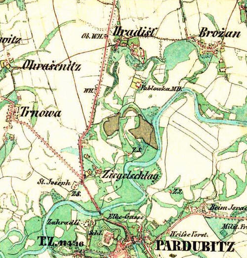 Ve druhé polovině 12. století patřilo Staré Hradiště Opatovickému klášteru. Klášter byl zničen husitským vojskem, majetek převzal Diviš Bořek z Miletínka, zápisem z 21.9.1436 mu majetek potvrdil císař Zikmund. Bořek přikoupil pardubickou tvrz a město. Později byla vlastníkem Minsterberská knížata a také rod Pernštejnů. V roce 1560, když muselo být panství pardubické spolu s panstvím kunětickohorským prodáno posledním držitelem Pardubic z rodu Pernštejnů, Jaroslavem z Pernštejna císaři Ferninandovi I. pro jeho syna Maxmiliána II., se také obec Hradiště stala majetkem české královské komory. Z bývalého panského dvora se dodnes zachoval vysoký zděný špýchar. U kříže postaveného ve starém Hradišti u cesty do Brozan bylo pochováno mnoho vojínů z francouzských válek. Hradiště bylo několikrát postiženo válečnými událostmi. V době třicetileté války bylo z deseti stavení zničeno pouze jedno. Další útrapy přinesl rok 1758 a 1866. V roce 1758 zde tábořily císařské pluky L. Wolfebruttela a Konigsecka s generálem Rutovem. V roce 1866 prošlo obcí pruské vojsko při svém pochodu od Hradce Králové na Pardubice. K Hradišti patřila také Fáblovka, původně zájezdní hostinec („zahradní šenkovní dům“) ležící na samotě o něco jižněji od Starého Hradiště při silnici z Pardubic do Hradce Králové. Postavena byla před rokem 1780. Její název vznikl zkomolením jména majitele hospody a celé usedlosti Ignáce Pabla, který se podílel na výstavbě pevnosti Josefov u Jaroměře v 18. století. Při výstavbě této pevnosti byl obviněn a odsouzen za vyzrazení plánů pevnosti Prusům. Za to byl v Josefově popraven. Tento mistr tesařský Ignác Pabl také vlastnil dům č.p. 61 na Pernštýnském náměstí, kde později sídlilo známé lahůdkářství U Vranešičů. Podle názvu hospody Fáblovky získala svůj název, užívaný dodnes, celá oblast mezi Polabinami, Starým Hradištěm a Ohrazenicemi. Hospoda přestala sloužit a areál se přeměnil v roce 1902 na obytný dům. Později zde byla zřízena malá továrna br. Nováků na zpracování a konservování ovoce a zeleniny. Severně nad Hradištěm vznikalo v posledních desetiletích 18. století na pozemcích zrušeného dvora hradišťského Hradiště na Písku. Úředně bylo také zváno pouze Písek. Jeho název byl odvozen od písčité půdy, na které stojí. Podle nejstarších zpráv zásobovala místní studánka dobrou vodou vojsko a proto byla vyznačena na vojenských mapách. „Červená studánka“ se jí říkalo proto, že byla svědkem velkého krveprolití za francouzských válek. Hradiště na Písku katastrálně patřilo pod obec Brozany. |