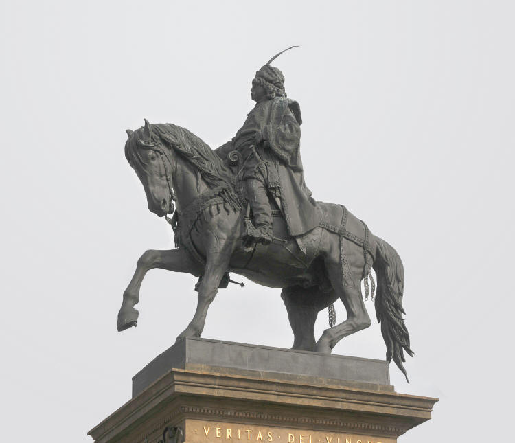 v držení důstojném a zároveň přirozeně nenuceném. Také okolí sochy vedlejšími