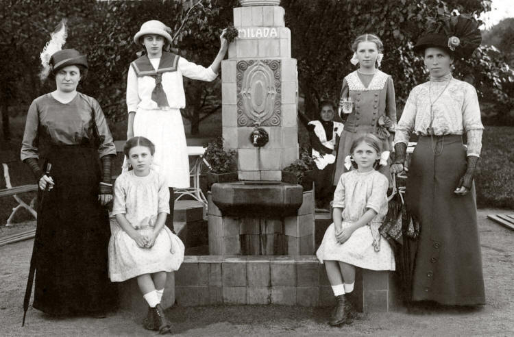 Hrob byl přičiněním především jeho druhorozeného syna Bohumila opatřen pískovcovým náhrobkem s bronzovou deskou a reliéfem s podobiznou Františka Boučka z profilu od sochaře Jindřicha Čapka. 128 Dr. Hrabětová uvedla v článku jako autora reliéfu Bohuslava Schnircha, což jsem ovšem v jiných pramenech nenašla. Byl to však švagr Bohumila Boučka, takže je srozumitelné, že by si někdo mohl myslet, že právě on stál za výrobou zmíněného reliéfu. Tentýž reliéf v sádrovém provedení údajně získalo každé z jeho dětí jako vzpomínku. Dalším vysvětlením může být to, že sochař Čapek zpracoval pomník, ale konkrétní reliéf s Boučkovou podobiznou dodal Bohuslav Schnirch. V roce 1904 byl starý hřbitov zrušen a většina hrobů a ostatků, včetně těch Boučkových, byla přesunuta do nového městského hřbitova v Kluku, který zde stojí dodnes. Na místě původní hrobky, v dnešních Purkyňových sadech, však zůstal zmíněný pískovcový náhrobek jako památník na lékaře „lidumila“. Odlitky tohoto bronzového medailonu udržovaly dlouho v rodinách jeho dětí vzpomínku na drahého otce. 129 Manželka Antonie přežila Františka o celých dvacet šest let. Rok po jeho smrti, tedy v roce 1883, předala dům svému synovi Bohumilovi a přestěhovala se spolu se svou ovdovělou dcerou Marií a její rodinou do zděděného domu na náměstí. Během tohoto období našla poměrně velkou zálibu v cestování. Později však i přes časté rodinné návštěvy a dennodenní kontroly jejích synů, kteří se usadili v Poděbradech, byla Antonie již velmi osamělá. Přirovnávala nynější svůj život k osudu uvězněného vraha císařovny Alžběty Lucheniho. 130 V posledních letech života ji tak syn Bohumil bral každé odpoledne k sobě domů, kde trávila čas s jeho rodinou. 131 Vnoučata na ni později vzpomínala jako na poměrně drsnou, sebevědomou a energickou osobnost. Byla známa svou poněkud korpulentní postavou. Pamatuji se, že jsem jako desetiletá žába zvědavě sledovala, kdo by se do štěrbiny v kočáře, kde už se babička usedla, mohl ještě vměstnati. Skutečně vešel se tam tenký strýček Bohumil, 132 uvedla jedna z jejích vnuček ve svých vzpomínkách. Dále vzpomínala, že pro její tělo musel být rodinou zakoupen hrob nový, jelikož starý hřbitov již nefungoval. 133 Z toho hřbitova však byl již dříve rodinný hrob přesunut. Mohlo to být tedy myšleno spíše tak, že vzhledem k četnosti jejích potomků bylo nutné zakoupit nový a větší hrob. Její náhrobek byl ozdoben bronzovým stromem se zlatými jablky, která symbolizovala její potomky a ji jako pramatku celého rodu. Zemřela nedlouho po otevření poděbradských lázní, 15. června 1908 v úctyhodných 84 letech. Na jejím parte bylo mezi pozůstalé zahrnuto také jejích 40 vnoučat a 20 pravnoučat. 134