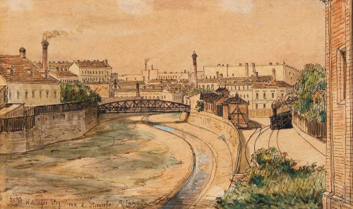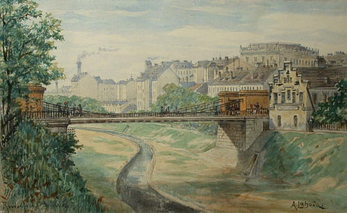 Alois Lahoda, Vídeň, Stiegerbrücke, Storchensteg, akvarel 1893