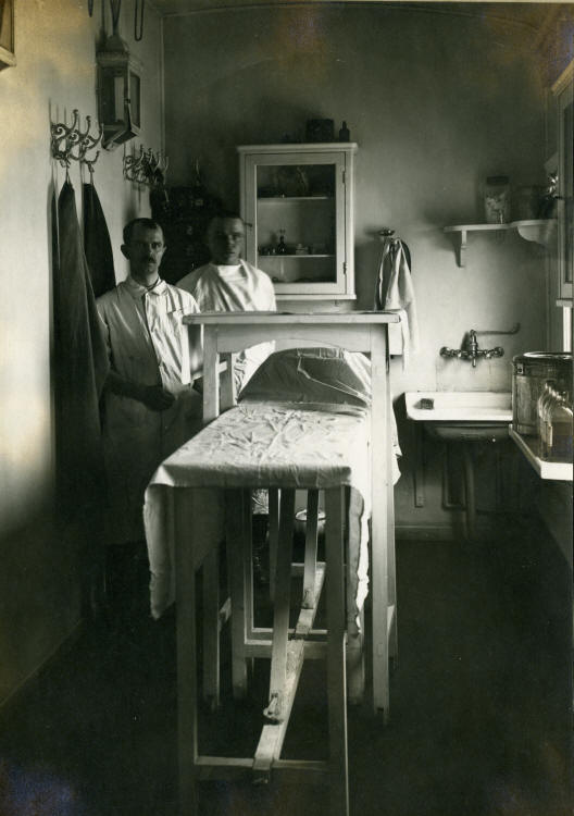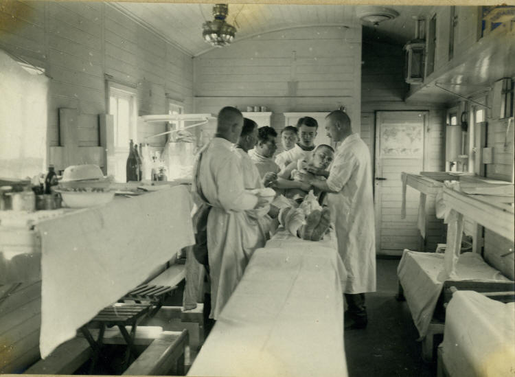 Sanitární vlak byl vybaven operačním vagonem, vagonem pro těžce