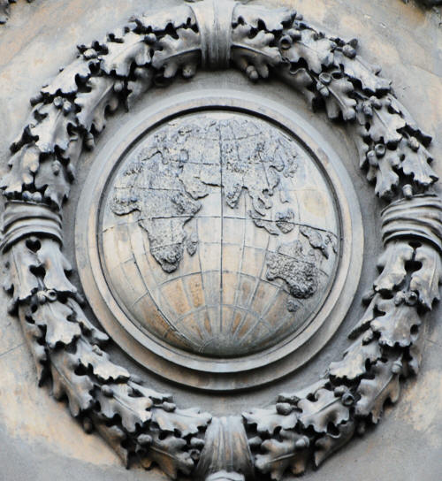 Zleva doprava jsou to alegorie Země (dvojice andílků se štítem, na