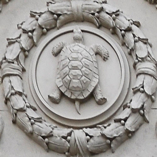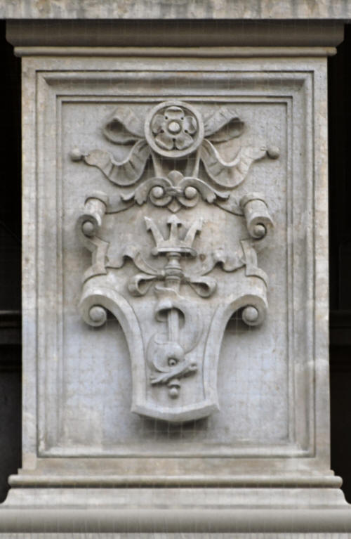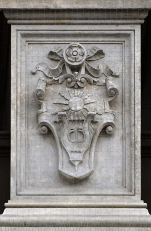 ovinutým delfínem), Ohně (štít s lyrou a sluncem) a Vzduchu (dvojice