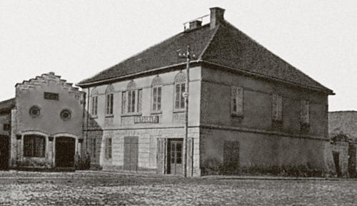 Šantlův patrový klasicistní dům č. 8-I - na místě, kde nyní stojí městský úřad - na konci náměstí po levé straně