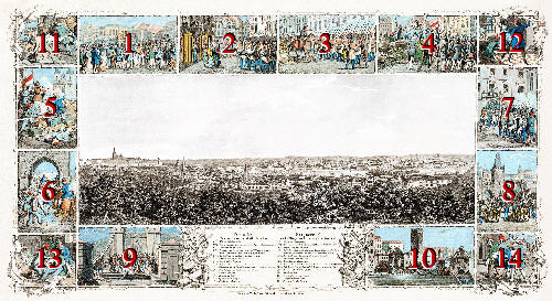 | Ȱ 2: | Prwní sražení lidu s wojskem před generálním komandem. | Ȱ 9: | Trhání mostnic se železného mostu w noci ze 14. na 15. čerwna. |