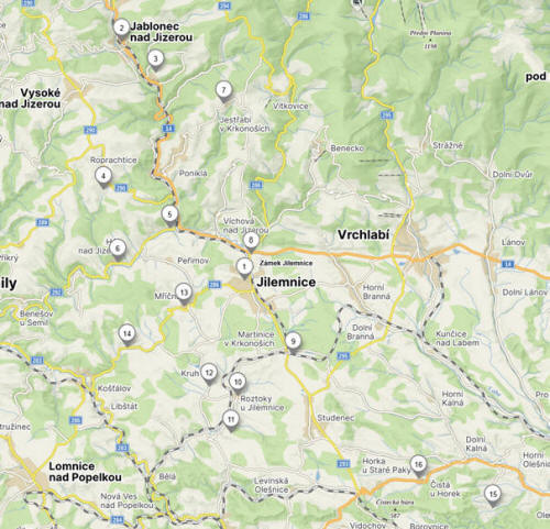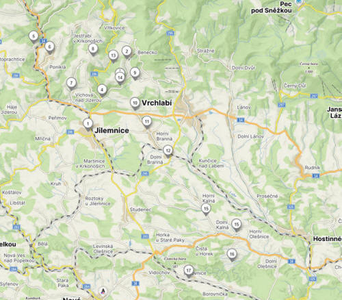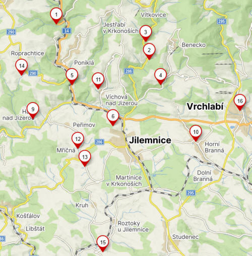 Štěpanická Lhota, 3 Horní Štěpanice, 4 Dolní Štěpanice, 5 Jilem, 6 Poniklá,