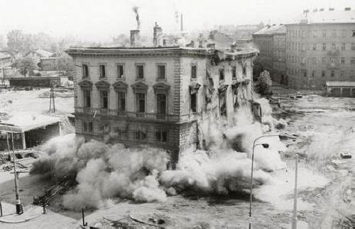 Alegorické sochy z areálu nádraží Těšnov, které bylo r. 1985 zbouráno kvůli magistrále, byly přemístěny do archivu Muzea hlavního města Prahy. Jedna z nich Alegorie vědy, dvoutunové dílo z litého kamene vídeňského sochaře Bohuslava Schnircha, se dostala do vestibulu Psychiatrické kliniky Všeobecné fakultní nemocnice v ul. Ke Karlovu, kde je přístupná veřejnosti. (PIS) |