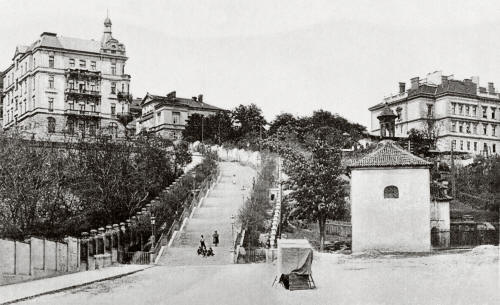 Nuselské schody v roce 1900 a viniční kaple sv. Rodiny