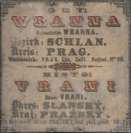 První zmínka o vsi Vraný v písemných historických pramenech je nepřímá a je učiněna v roce 1318 v přídomku Rudolfa, Albrechta a Jana z Vraného, ale není jisté, zda Vraný skutečně vlastnili (některá odborná literatura je s Vraným u Slaného nespojuje vůbec, viz níže Profous). V letech 1340-1359 se připomíná Bedřich z Vraného (Friderico de Wraneho - 1340, Friderico de Wranye - 1346, Bedrzichoni de Wranyeho), jehož vztah ke vsi je již bez pochybnosti. V jeho době je, záznamem v soupise papežského desátku z roku 1352, zmíněna zdejší fara, která nutně předpokládá existenci kostela. Současný kostel sv. Jana Křtitele je barokní stavbou z let 1751-1761. Zde umístěný epitaf Petra Chotka z Vojnína z roku 1571 a náhrobník z roku 1579 jsou transferované artefakty z výbavy původního gotického kostela, který stával ve dvoře domu č. p. 10 a byl v roce 1756 zbořen. V erbu Bedřicha z Vraného byla ruka s mečem (1346), ale další uživatelé přídomku z Vraného měli v erbu orlici (1365 Ondřej z Vraního; 1375 Vilém z Vraního). Jiní pak používali ve štítu orlici, ale klenotem byla obrněná ruka s mečem (1406 Mikeš z Vraního; 1406 Hynek z Vraního; 1463 Václav z Vraního; 1484 Jindřich Vejce z Vraního). Na základě podobnosti s erbem pánů ze Žirotína (ve štítě kosmá orlice) se uvažuje o stejném původu. Od Mikše (Mikuláše) a Ondřeje z Vraního vzešli Kopanští z Vraního. Od potomků výše zmíněného Bedřicha z Vraného pocházeli Šlovičtí, Luníkovští a Vejcové z Vraního. Ti již, krom přídomku, neměli se vsí Vraný nic společného. V roce 1394 je jako patron vranského kostela připomínán Jindřich z Dubé, který nepochybně vlastnil alespoň části vsi. V této době možná už stála i zdejší tvrz, která je zmíněna poprvé v roce 1399 jako majetek Hynka z Kaufunku společně s dílem vsi, ale bez patronátního práva ke kostelu. Právo podací k vranskému kostelu v roce 1434 uplatňoval Vilém Zajíc z Házmburka. V následujících letech jsou majetkové poměry ve vsi poněkud nepřehledné. I nadále zde měli majetek Kaufunkové. Jejich vlastnictví v roce 1453 získal Vilém z Ilburka. V roce 1479 byl držitelem Beneš z Veitmile a pak od roku1534 Arkleb z Boskovic. Zajícové z Házmburka museli ve Vraném vlastnit rozhodnou část vsi, protože v roce 1513 na přímluvu Jana Zajíce z Házmburka král Vladislav Jagellonský povolil ve Vraném konání trhů a ves povýšil na městečko. Z pohledu předmětu rešerše je další podrobné sledování vlastníků městečka Vraného bezpředmětné. Zmíníme, že v roce 1543 Jan Zajíc z Házmburka prodal Vraný městu Slaný. Jemu bylo městečko v roce 1547 konfiskováno za účast v protihabsburském povstání a následující tři roky spravováno českou královskou komorou. Do dědičného držení získal Vrané v roce 1550 královský prokurátor Petr Chotek z Vojnína (+1571), majitel hradu Žirotína. Vraný byl k panství tohoto hradu připojen a setrval u něj až do roku 1655. Chotkové a jejich nástupci vybudovali ve Vraném novou tvrz. Pak se zde vystřídalo několik vrchností z různých šlechtických rodů. V roce 1706 koupila Vraný kapitula při chrámu sv. Víta v Praze. Kapitula postavila ve Vraném nový kostel a v letech 1785-1794 také nový zámek. Použitá literatura k historii městyse Vraný: - Anděl, Rudolf: Hrady, zámky a tvrze v Čechách, na Moravě a ve Slezsku, III. Severní Čechy. Praha 1984, s. 520. - Kuča, Karel: Města a městečka v Čechách, na Moravě ave Slezsku. VIII. díl. Praha 2011, s. 383–387 (dále jen Kuča). - Profous, Antonín: Místní jména v Čechách. Díl IV., Praha 1957, s. 617-618. - Sedláček, August: Hrady, zámky a tvrze Království českého. Díl VIII., Praha 1891, s. 214 (Vraní). - Sedláček, August: Atlasy erbů a pečetí české a moravské středověké šlechty. Svazek 2., Praha 2001, fol. 176v-177r. - Velc, Ferdinand: Soupis památek historických a uměleckých v Království českém. XX. Politický okres slánský. Praha 1904, s. 404-406, Vrané (druhdy též Vraní; dále jen Velc).
