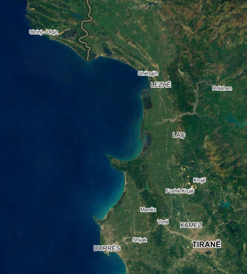 na území Albánie, stejně jako blízkého přístavu Shëngjin. Díky tomu