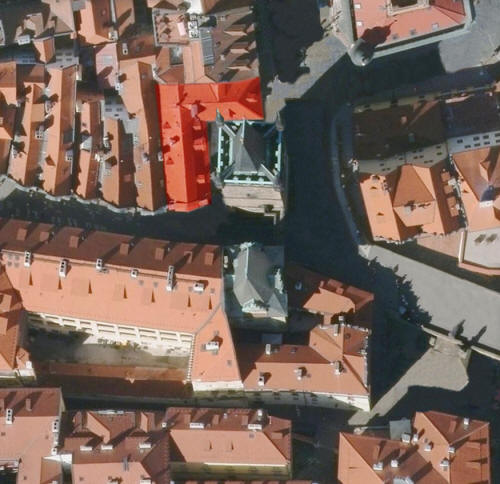 Dům má kromě fasády do Mostecké ulice křídlo, které směřuje na Dražického náměstí
