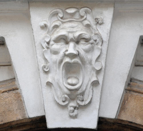 Maskaron nad vchodem byl možná inspirací pro Městskou spořitelnu pražskou