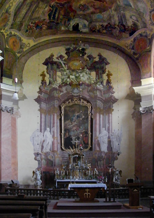 fresky z období kolem roku 1770. Nad hlavním oltářem je freska