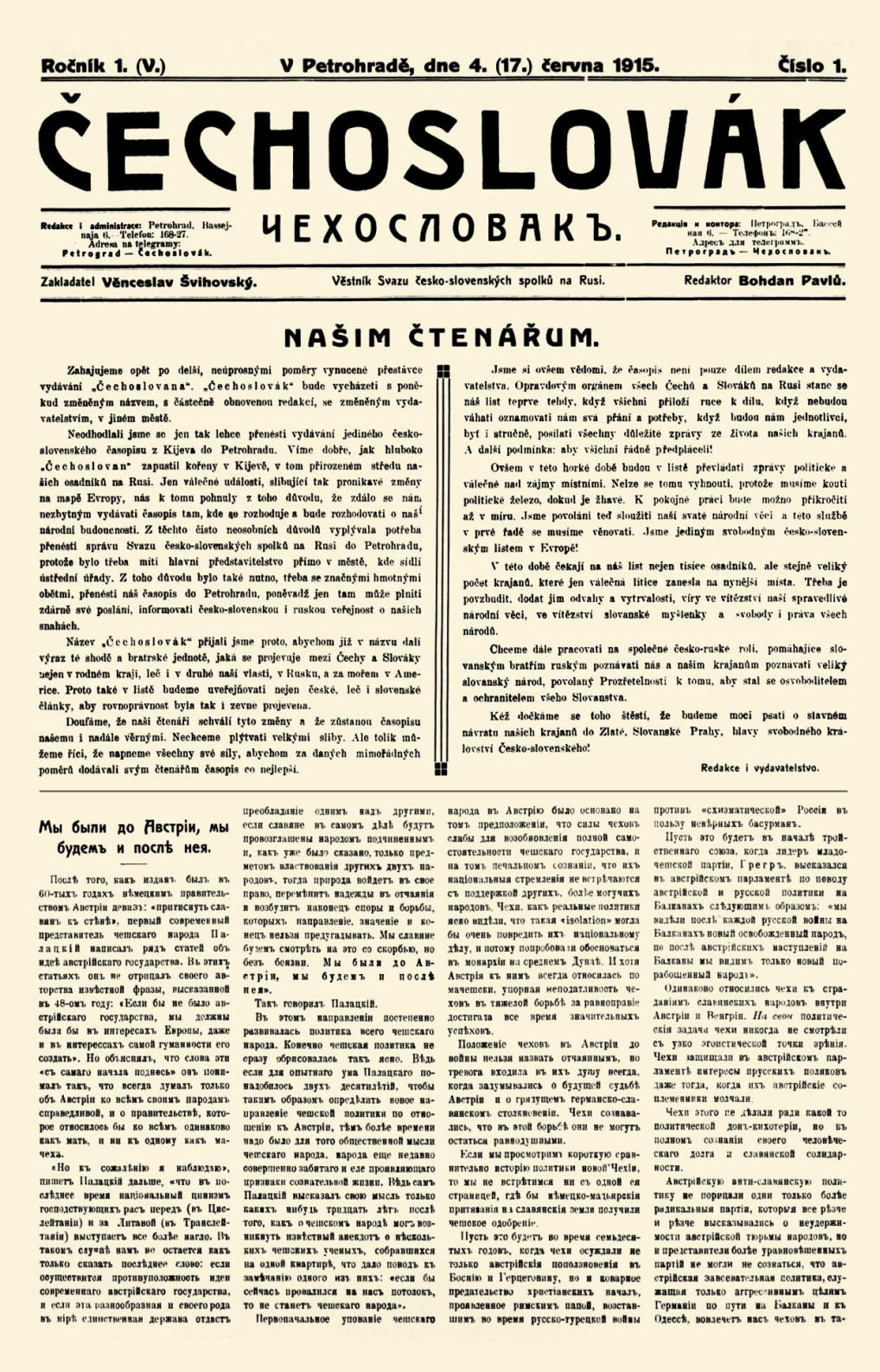 První strana prvního čísla časopisu po příchodu Bohdana Pavlů do Petrohradu.
