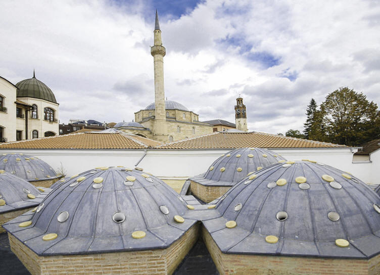 Velký Hammam v Prištině postavený v 15 století jako součást areálu mešity sultána Murata Fatiha. Má symetrický půdorys a mohl sloužit zároveň mužům i ženám. Sestával z apoditeria (šatny), tepidaria (prohřáté místnosti) a caldaria (ochlazovací lázně) s vlastním zásobníkem vody. Areál je kryt 15 klenbami s malými otvory, které zajišťovaly osvětlení a odvětrání vnitřních prostor. Lázeňský proboz byla ukončen v roce 1960, budova se používala jako sklad a obchod. V současné době (2015) probíhají restaurační a rekonstrukční práce. |