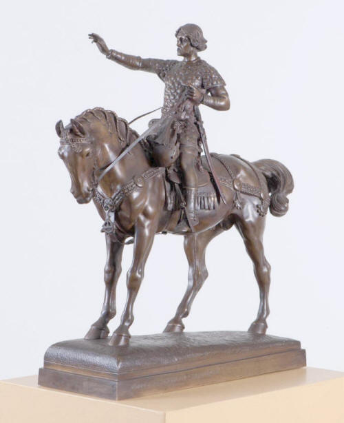 Jednou v životě vnitřní síla jeho zlomila nadobro pouta tradic, cit zvítězil nad klidnou rozvahou a co v nitru bylo utajeno, vytrysklo v nádherný čarovný květ: V překrásném, žel neprovedeném návrhu na jezdeckou sochu svatého Václava, v tom díle vzácné ušlechtilosti, rosné svěžesti a čiře poetického půvabu, v němž na okamžik sblížil se se snahami a směry, ovládajícími jeho soudruhy v umění. Nad svěžím rovem umělcovým dvojnásob želíme, že ani tuto nejluznější vidinu svou nespatřil vtělenu v hotové, vítězné dílo. Jest to nejzralejší, nejoriginálnější a nejskvělejší dílo, jež z ruky jeho vzešlo, dílo každým rysem naše, pravé to umělecké ztělesnění zářné vidiny, žijící v duši celého národa. A jest to nepopiratelně úchvatné dílo plastické, jež přes všechnu vzácnou svoji noblesu a distinguovaný svůj ráz má vysloveně demokratické zbarvení, jako je má i populární jeho pomník krále Jiřího z Poděbrad, jenž ze všech jeho prací jest dojista nejznámějším. Mluvou nezapomenutelnou socha národního světce mluví ke každému českému srdci. Jímá, okouzluje, podmaňuje si diváka.