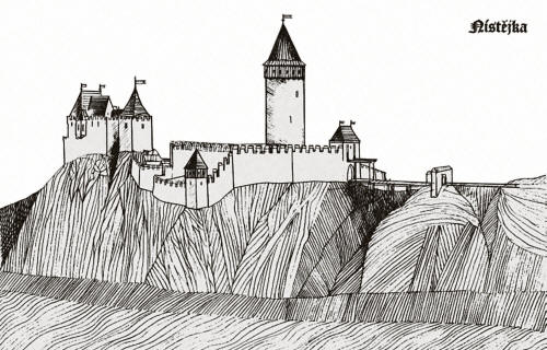 Hrad ve Štěpanicích, ilustrace J. Šíra v kronice obce Horní Štěpanice