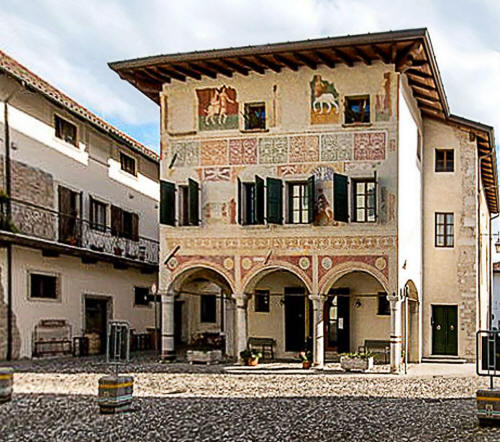 Základy hradu pocházejí z období kolem roku 1100, je vyzdoben freskami ze 14. století, podlahy jsou v benátském stylu. |