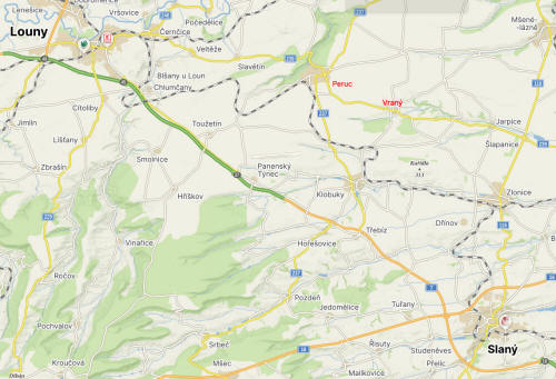 První zmínka o vsi Vraný v písemných historických pramenech je nepřímá a je učiněna v roce 1318 v přídomku Rudolfa, Albrechta a Jana z Vraného, ale není jisté, zda Vraný skutečně vlastnili (některá odborná literatura je s Vraným u Slaného nespojuje vůbec, viz níže Profous). V letech 1340-1359 se připomíná Bedřich z Vraného (Friderico de Wraneho - 1340, Friderico de Wranye - 1346, Bedrzichoni de Wranyeho), jehož vztah ke vsi je již bez pochybnosti. V jeho době je, záznamem v soupise papežského desátku z roku 1352, zmíněna zdejší fara, která nutně předpokládá existenci kostela. Současný kostel sv. Jana Křtitele je barokní stavbou z let 1751-1761. Zde umístěný epitaf Petra Chotka z Vojnína z roku 1571 a náhrobník z roku 1579 jsou transferované artefakty z výbavy původního gotického kostela, který stával ve dvoře domu č. p. 10 a byl v roce 1756 zbořen. V erbu Bedřicha z Vraného byla ruka s mečem (1346), ale další uživatelé přídomku z Vraného měli v erbu orlici (1365 Ondřej z Vraního; 1375 Vilém z Vraního). Jiní pak používali ve štítu orlici, ale klenotem byla obrněná ruka s mečem (1406 Mikeš z Vraního; 1406 Hynek z Vraního; 1463 Václav z Vraního; 1484 Jindřich Vejce z Vraního). Na základě podobnosti s erbem pánů ze Žirotína (ve štítě kosmá orlice) se uvažuje o stejném původu. Od Mikše (Mikuláše) a Ondřeje z Vraního vzešli Kopanští z Vraního. Od potomků výše zmíněného Bedřicha z Vraného pocházeli Šlovičtí, Luníkovští a Vejcové z Vraního. Ti již, krom přídomku, neměli se vsí Vraný nic společného. V roce 1394 je jako patron vranského kostela připomínán Jindřich z Dubé, který nepochybně vlastnil alespoň části vsi. V této době možná už stála i zdejší tvrz, která je zmíněna poprvé v roce 1399 jako majetek Hynka z Kaufunku společně s dílem vsi, ale bez patronátního práva ke kostelu. Právo podací k vranskému kostelu v roce 1434 uplatňoval Vilém Zajíc z Házmburka. V následujících letech jsou majetkové poměry ve vsi poněkud nepřehledné. I nadále zde měli majetek Kaufunkové. Jejich vlastnictví v roce 1453 získal Vilém z Ilburka. V roce 1479 byl držitelem Beneš z Veitmile a pak od roku1534 Arkleb z Boskovic. Zajícové z Házmburka museli ve Vraném vlastnit rozhodnou část vsi, protože v roce 1513 na přímluvu Jana Zajíce z Házmburka král Vladislav Jagellonský povolil ve Vraném konání trhů a ves povýšil na městečko. Z pohledu předmětu rešerše je další podrobné sledování vlastníků městečka Vraného bezpředmětné. Zmíníme, že v roce 1543 Jan Zajíc z Házmburka prodal Vraný městu Slaný. Jemu bylo městečko v roce 1547 konfiskováno za účast v protihabsburském povstání a následující tři roky spravováno českou královskou komorou. Do dědičného držení získal Vrané v roce 1550 královský prokurátor Petr Chotek z Vojnína (+1571), majitel hradu Žirotína. Vraný byl k panství tohoto hradu připojen a setrval u něj až do roku 1655. Chotkové a jejich nástupci vybudovali ve Vraném novou tvrz. Pak se zde vystřídalo několik vrchností z různých šlechtických rodů. V roce 1706 koupila Vraný kapitula při chrámu sv. Víta v Praze. Kapitula postavila ve Vraném nový kostel a v letech 1785-1794 také nový zámek. Použitá literatura k historii městyse Vraný: - Anděl, Rudolf: Hrady, zámky a tvrze v Čechách, na Moravě a ve Slezsku, III. Severní Čechy. Praha 1984, s. 520. - Kuča, Karel: Města a městečka v Čechách, na Moravě ave Slezsku. VIII. díl. Praha 2011, s. 383–387 (dále jen Kuča). - Profous, Antonín: Místní jména v Čechách. Díl IV., Praha 1957, s. 617-618. - Sedláček, August: Hrady, zámky a tvrze Království českého. Díl VIII., Praha 1891, s. 214 (Vraní). - Sedláček, August: Atlasy erbů a pečetí české a moravské středověké šlechty. Svazek 2., Praha 2001, fol. 176v-177r. - Velc, Ferdinand: Soupis památek historických a uměleckých v Království českém. XX. Politický okres slánský. Praha 1904, s. 404-406, Vrané (druhdy též Vraní; dále jen Velc).