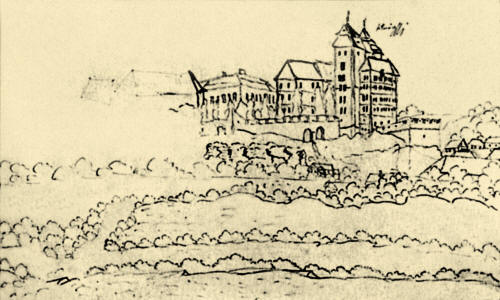 Mladá Boleslav na kresbě Karla Hynka Máchy z 22.8.1833