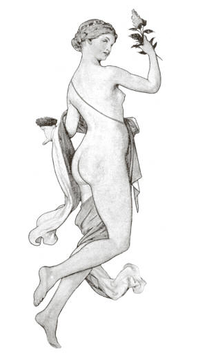 alegorických ženských postav, vějířovitě rozmístěných na stropě