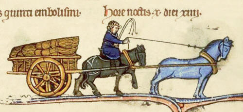 Ve středověku bývaly povozy kvůli cestám úzké a koně zapřahali za sebou
