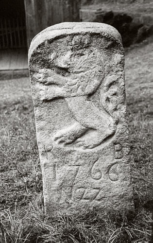 Hraniční kámen (patník) s českým lvem z roku 1766